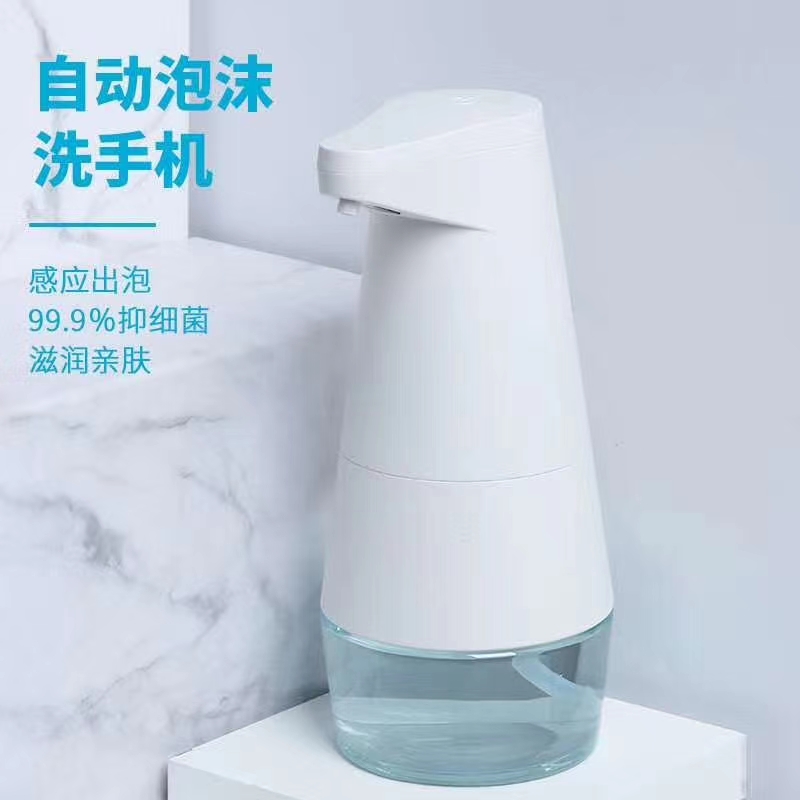 一种智能洗手机,包括铆接在一起的封闭的内壳和开放的外壳,所述外壳包裹部分的内壳,所述内壳能够绕铆接部件在外壳的内部转动,所述内壳的内部设置有感应模块、发泡装置和控制模块,所述感应模块设置在内壳的底部,所述控制模块包括电源。